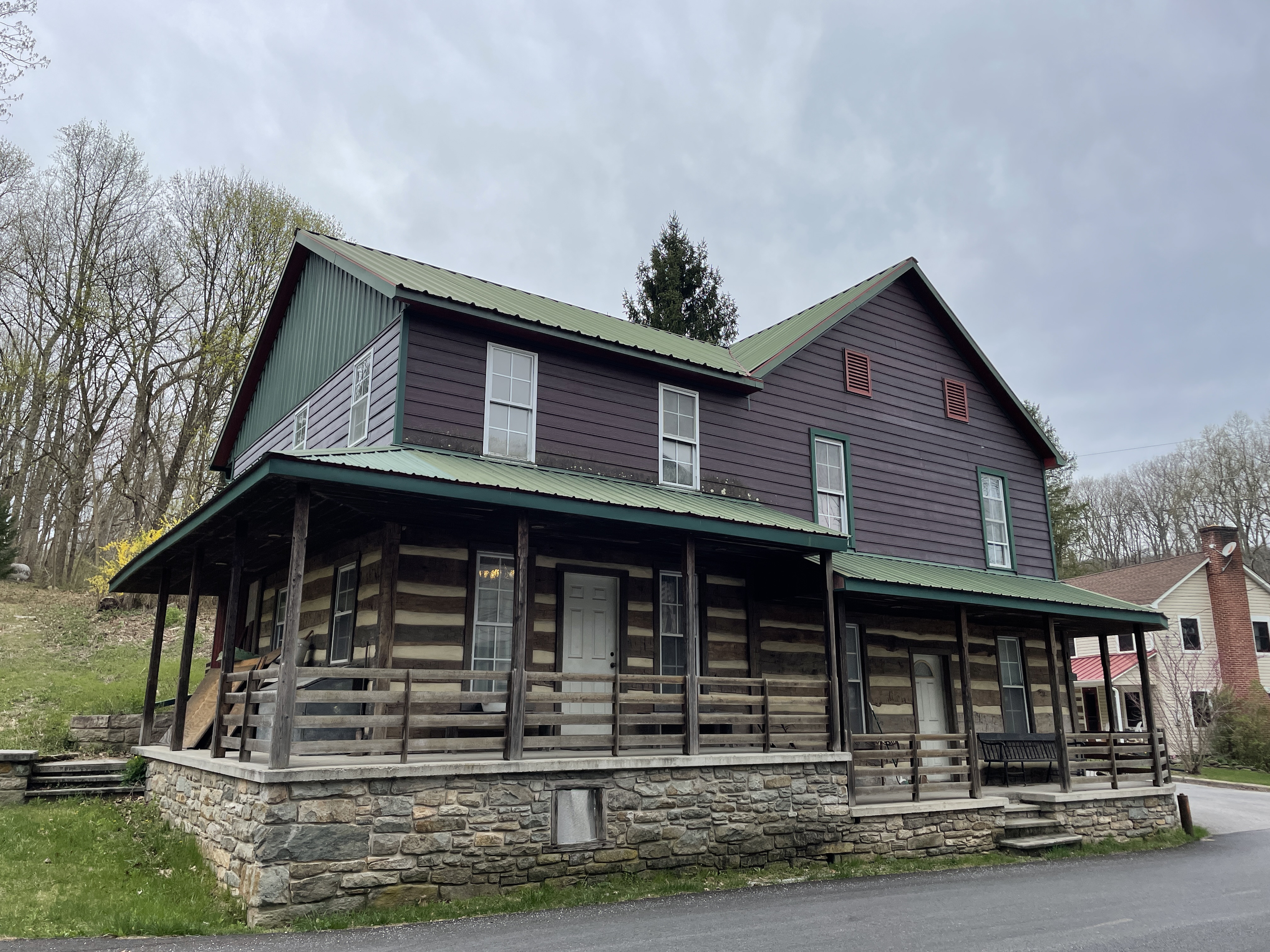 Situated in a small, quiet town, this home, originally built as a showroom, is full of character and charm. This two-story farmhouse style home, with its charming early log façade, hosts two plumbed kitchens, a dining room, office/living room and roughed-in powder room on the first floor. The second floor has 4 bedrooms including master suite with vaulted ceilings and double closet, full bathroom with clawfoot tub, and common area. This home includes hardwood floors, brick floors, wood beam ceilings, while adding modern convenient touches such as hydronic floor heat.