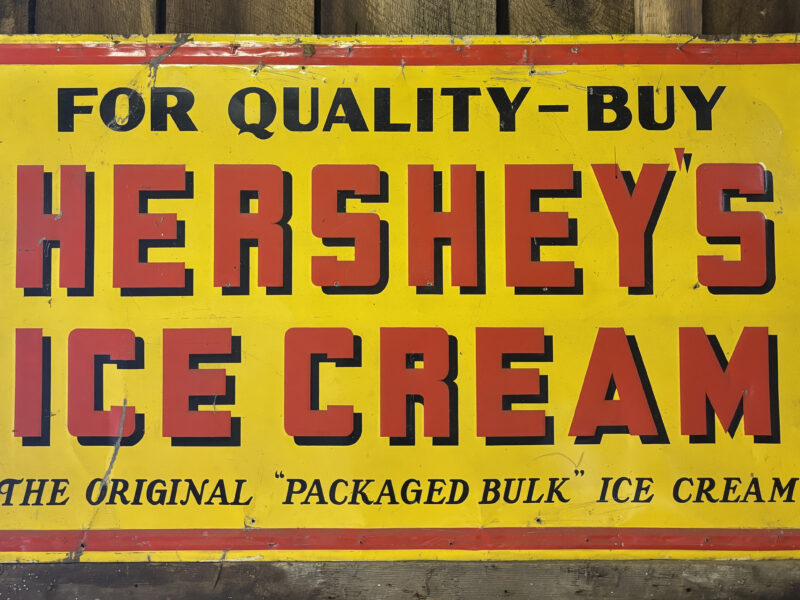 McCormick-Deering 1 1/2 HP Hit & Miss Engine, Rare Nissly Cocoa Sample Advertising Tin from Florin, PA, A 1930’s Hershey’s Advertising Sign, an early wood sign from the Garden Spot Restaurant advertising Chicken and Waffles, great selection of antique advertising signs & thermometers from Elizabethtown, Mt. Joy & Rheems, milk bottles & boxes from local Lancaster County dairies, beer bottles & labels from Bube’s Brewery, Mt. Joy, large collection of E.S. & B Crocks, both doors with advertising from a Spickler‘s Dairy 1930s Delivery Truck, Historic Landmark “Sign Eating Tree”, Buch wheelbarrows, farm equipment and more!