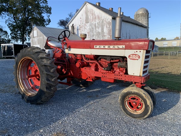 Tractors: IH 666 diesel, 6814 hrs, 18.4×38 tires, 80%, 2 remotes, new seat, nice cond; IH 574, 2050 loader, 16.9×28 tires, diesel, rear 3 pt weight; Farmall 560, gas, NF, fast hitch; Farmall Super C with mounted cultivators