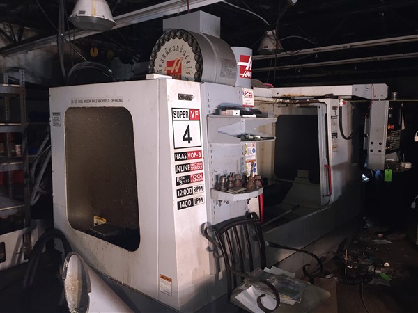 Short online auction, 2 Bridgeport milling machines, band saws, hardware, bolt bins, CNC Machines, etc. All equipment is in as found condition, having been unused/out of service for many years.