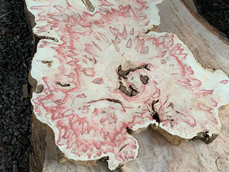 Extensive selection of rough-cut lumber including extremely unusual and large live-edge slabs; rough-cut planks in Cherry, Walnut, Maples, Sycamore, Hickory, Pine, and various softwoods, some firewood. Lots of pieces and extremely varied sale!