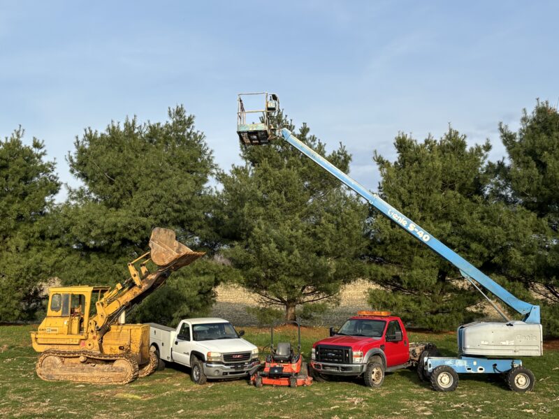 ‘08 Ford F550 Super Duty (Cab & Chassis),’05 GMC 2500 HD Duramax w/ Utility Bed,’88 Chevrolet Caprice Classic,’70 Caterpillar 955K Bulldozer,’98 Genie S-40 Boomlift (Dual Fuel),Kubota ZD31 Z Turn Mower (Diesel),General 9’ Harrow, Danuser 6’ 3 Pt Blade,80”x80” SS Tollbooth.